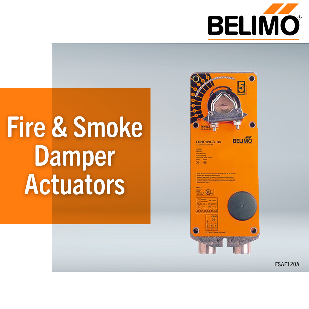Belimo fire and smoke damper actuators are designed for operation in smoke and combination fire and smoke dampers in ventilation and air conditioning systems with a torque range from 18 in-lbs to 180 in-lbs at 350°F.