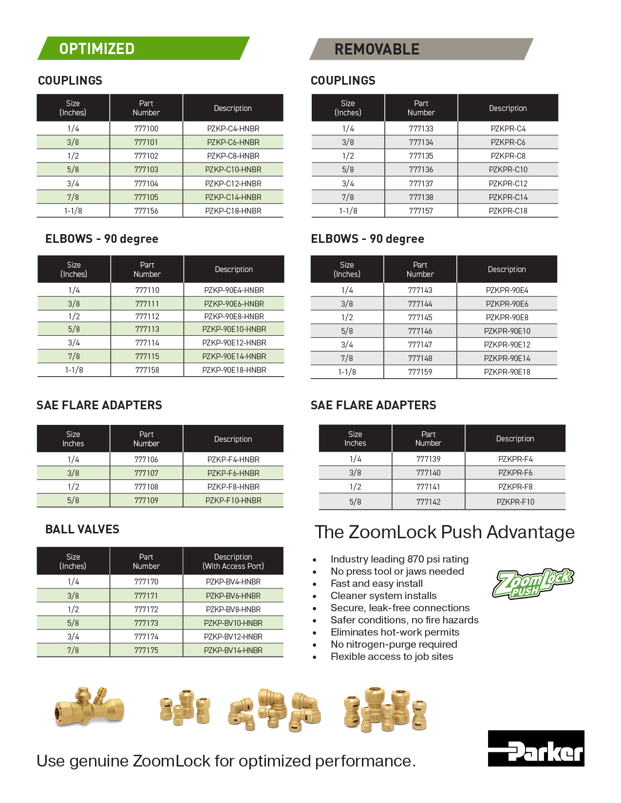 Parker takes pride in the quality and performance of their ZoomLock Push product family. As the industry standard for easy-to-connect HVACR fittings, ZoomLock has received extensive qualification and performance testing, ensuring that it meets all industry requirements without compromise.
